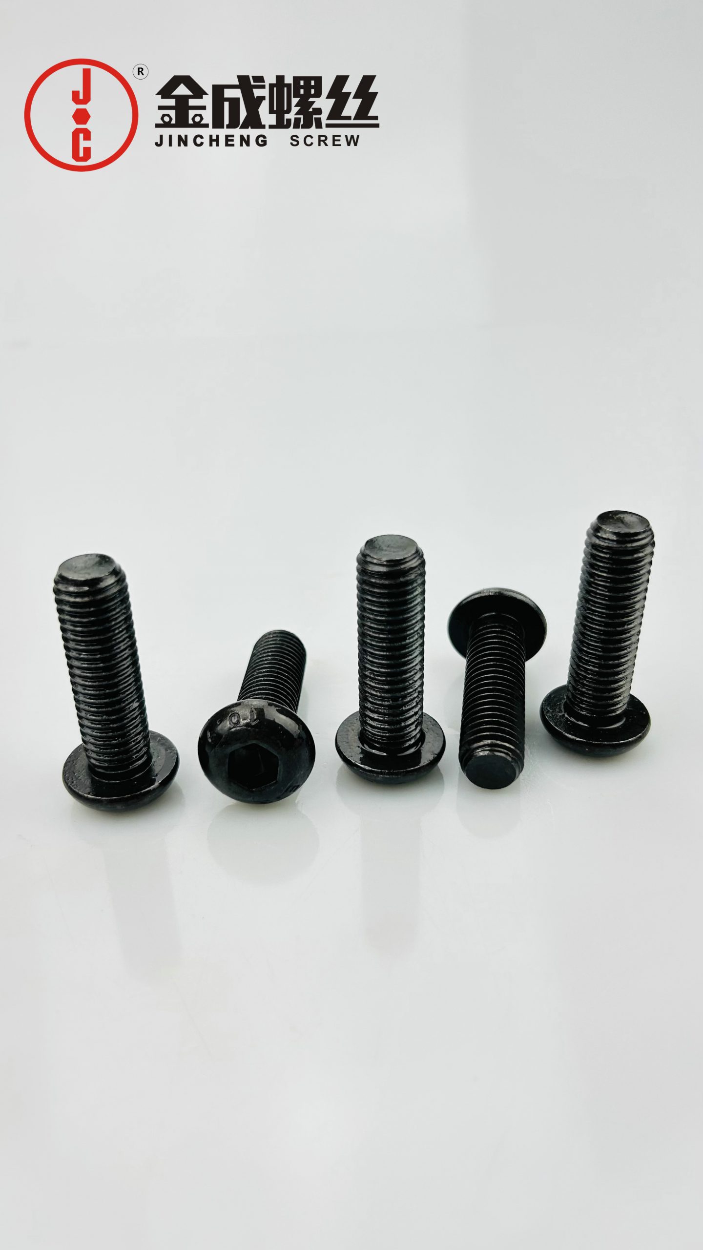 10.9级内六角平圆头螺钉的应用:10.9级内六角平圆头螺钉是一种具有内六角孔和半圆头的螺钉有些客户也称它为蘑菇头螺丝或是圆头螺钉,主要应用于以下行业,1、机械设备:内六角平圆头螺钉通常用于连接两个或多个零件,通过将螺钉拧入螺纹孔中,可以牢固地固定零件,确保它们不会松动或分离。在用于机械设备的组装和固定。它们可以用于连接各种机械零件,如机床、机器人、汽车零部件等。2、电子产品:由于内六角设计,内六角平圆头螺钉可以使用内六角扳手或扳手进行拧紧和松开。这种设计使得螺钉可以方便地进行调节和调整,以满足特定的要求。内六角平圆头螺钉常用于电子产品的组装。它们可以用于固定电路板、电子元件和外壳等。3、家具制造:内六角平圆头螺钉的头部是平圆形的,没有突起的部分。这种设计使得螺钉可以在表面上提供平整的连接,减少了在连接部位产生凸起的可能性。用于家具制造,它们可以用于固定家具的各种部件,如桌子、椅子、柜子等。4、建筑工程:在建筑工程中,10.9级平圆头螺钉可以用于固定和连接各种金属构件,如钢结构、金属板材等玻璃幕墙安装使用由为常见。总之,10.9级内六角平圆头螺钉在各个领域得到广泛应用,其强度、表面电镀后耐腐蚀性、美观都使其成为一种可靠的连接紧固件。