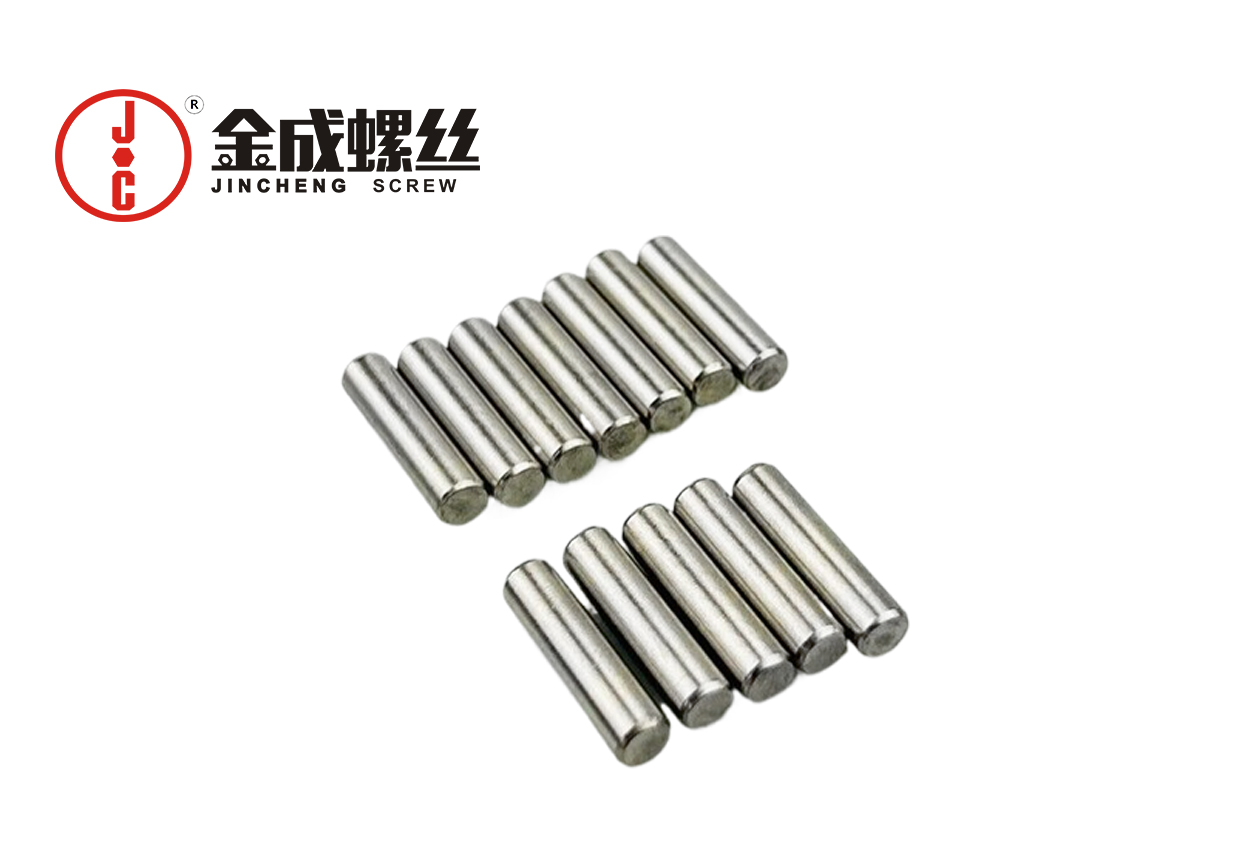 圆柱销也称为铆钉或销子,是一种长形的销钉,它的外形呈圆柱形,通常由金属材料制成。一般情况下,材质多选用C35,C45,但须进行热处理。高强度要求下选用轴承钢。圆柱销也有普通圆柱销、内螺纹圆柱销、螺纹圆柱销、带孔销、弹性圆柱销等几种。圆柱销通常具有平头或圆头,并且在一端或双端设置有槽口或凹槽,便于安装和拆卸。圆柱销主要用于机械连接中的定位和固定,常见的应用包括连接轴与齿轮、滑轮或联轴器等部件。通过将圆柱销插入两个相互配合的孔中,可以实现零件之间的位置固定和传递转矩的功能。圆柱销还可以用于组合夹紧和定位,在一些需要可拆卸的连接处使用。关于螺丝螺母垫圈技术与使用事宜,金成螺丝运用多年行业经验为工业客户,开启产品、设计、技术、降本等相关问题“永久免费”答疑!用心助力工业发展!做工业喜爱的螺丝服务商!欢迎随时咨询我们133 2690 6112。